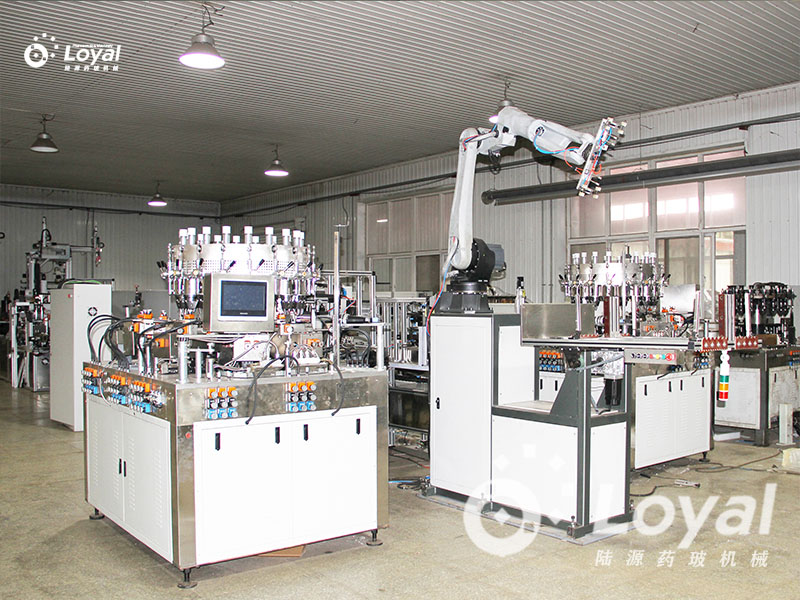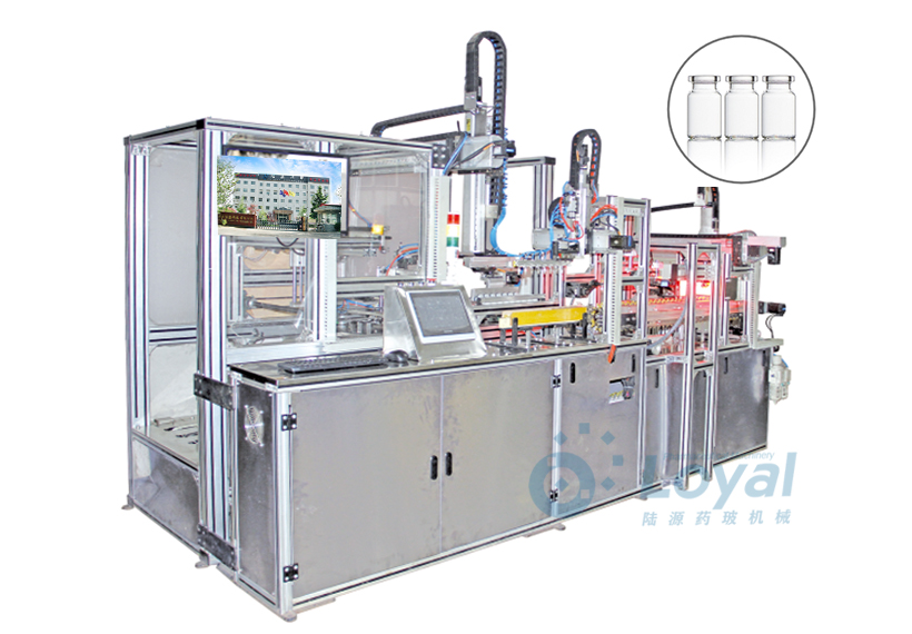 西林瓶生產(chǎn)線包括:自動(dòng)上管、自動(dòng)成型、經(jīng)機(jī)械手轉(zhuǎn)換至前端檢測線(也叫生產(chǎn)管控)、檢測線檢測的項(xiàng)目:1、瓶口內(nèi)外徑 2、瓶身長短 3、瓶身外徑 4、瓶口邊厚 5、瓶底內(nèi)凹尺寸檢測;經(jīng)檢測后的合格品再用機(jī)械手夾盤轉(zhuǎn)換至退火爐網(wǎng)帶上,經(jīng)高溫減除應(yīng)力后再降溫,通過氣動(dòng)吸盤將回火后的小瓶轉(zhuǎn)換至后端檢測線,后端檢測(也是重檢也叫終檢),經(jīng)后端拍照檢測項(xiàng)目 -